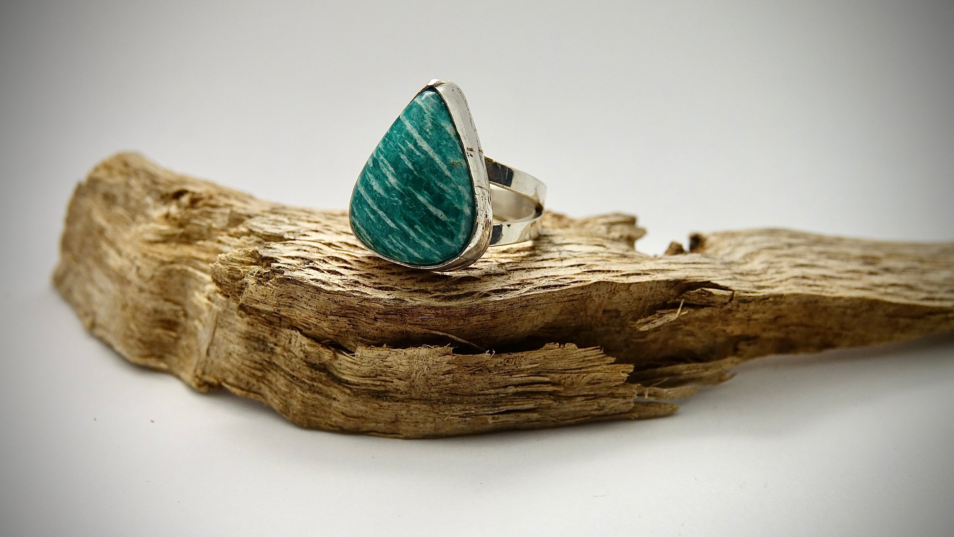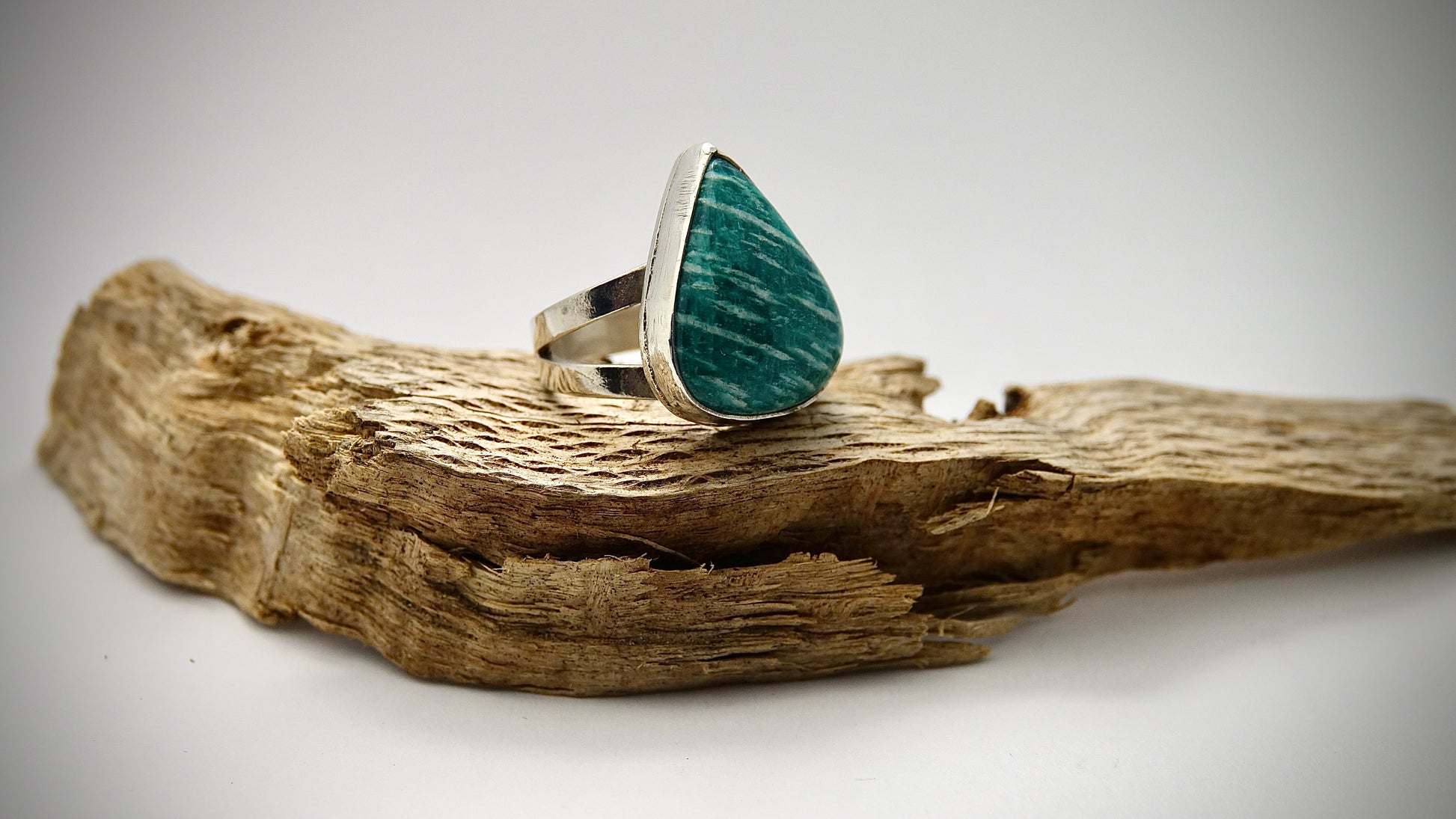 Amazonite Ring - Teardrop stone with split band - Size 6.5