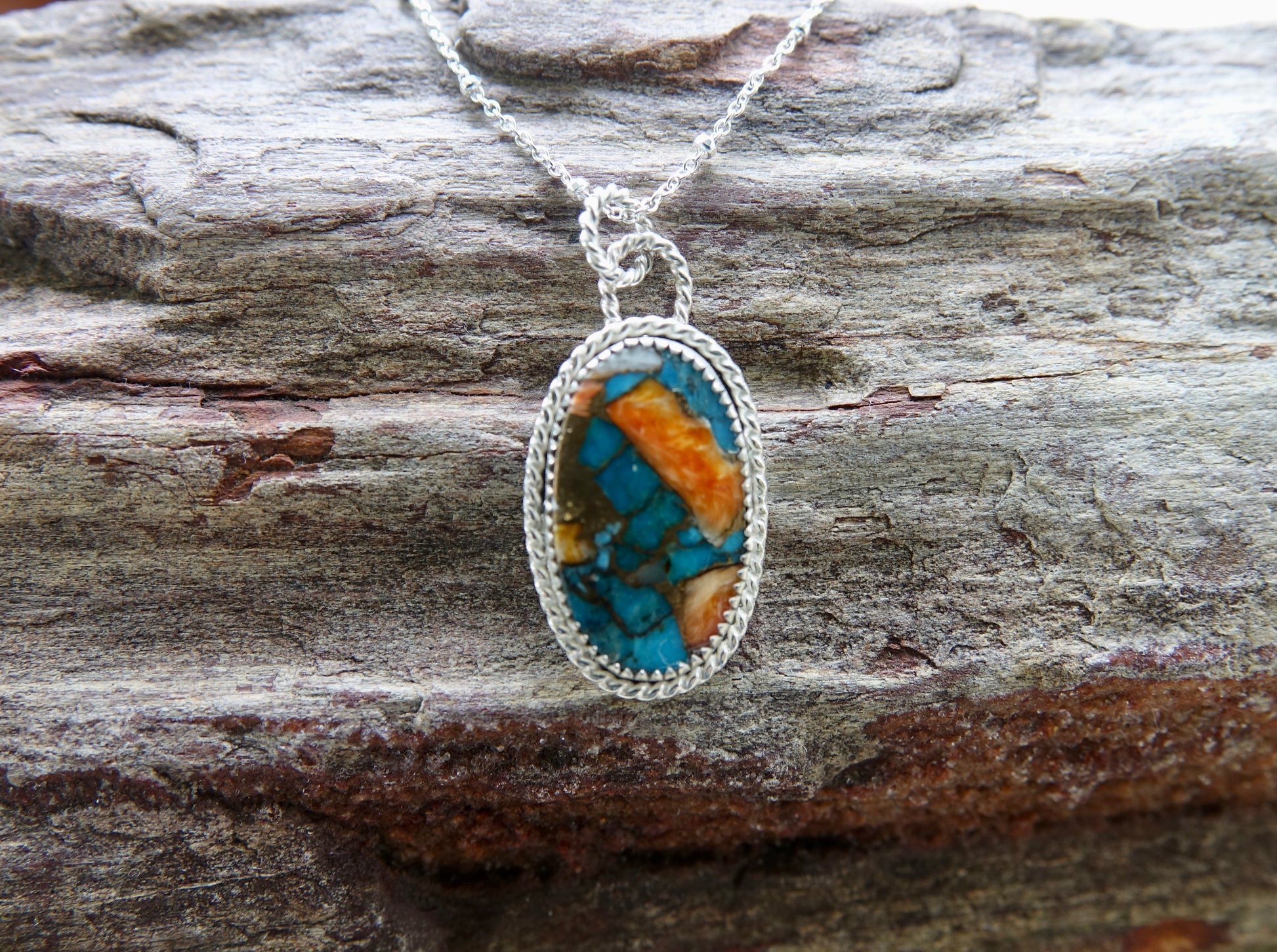 American Mosaic Necklace - Oval with rope accent on Sterling Silver 18" Cable Chain with Diamond Cut Beads