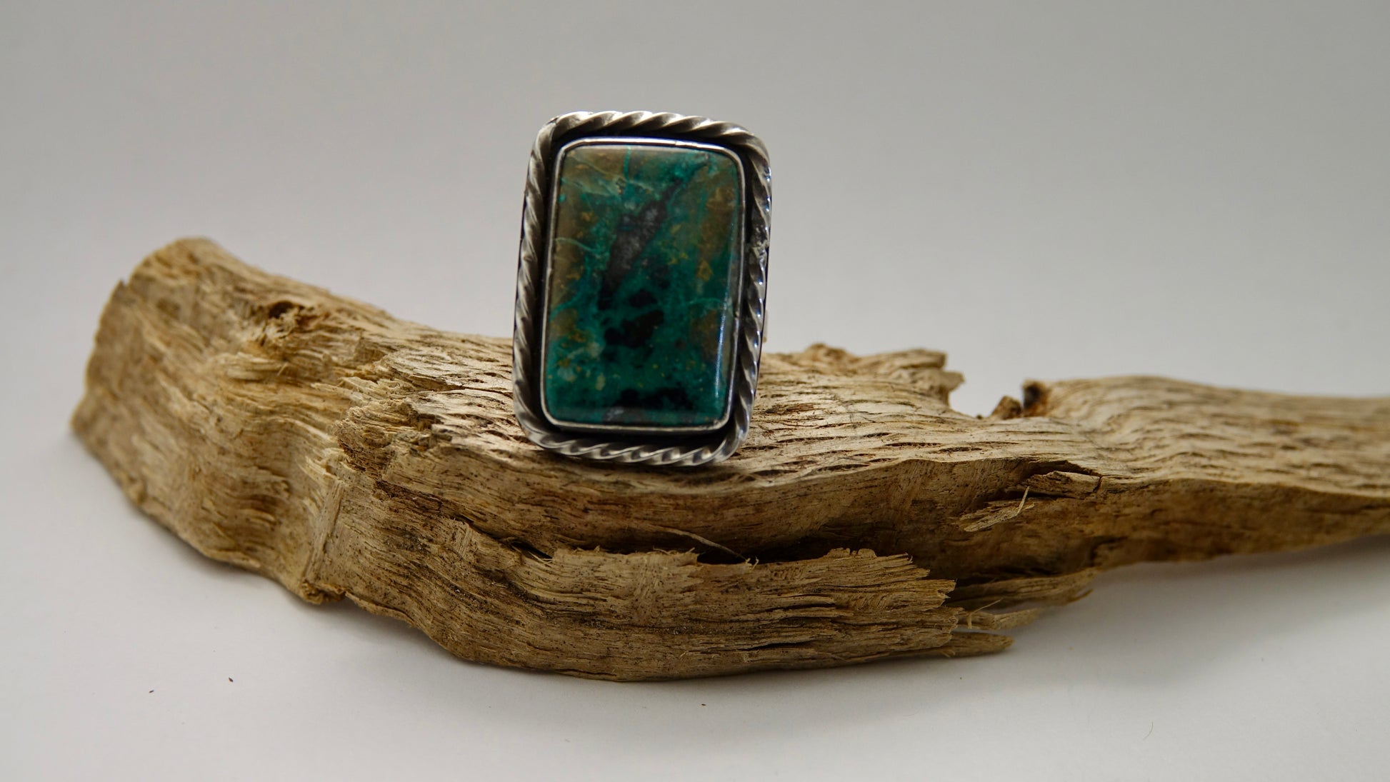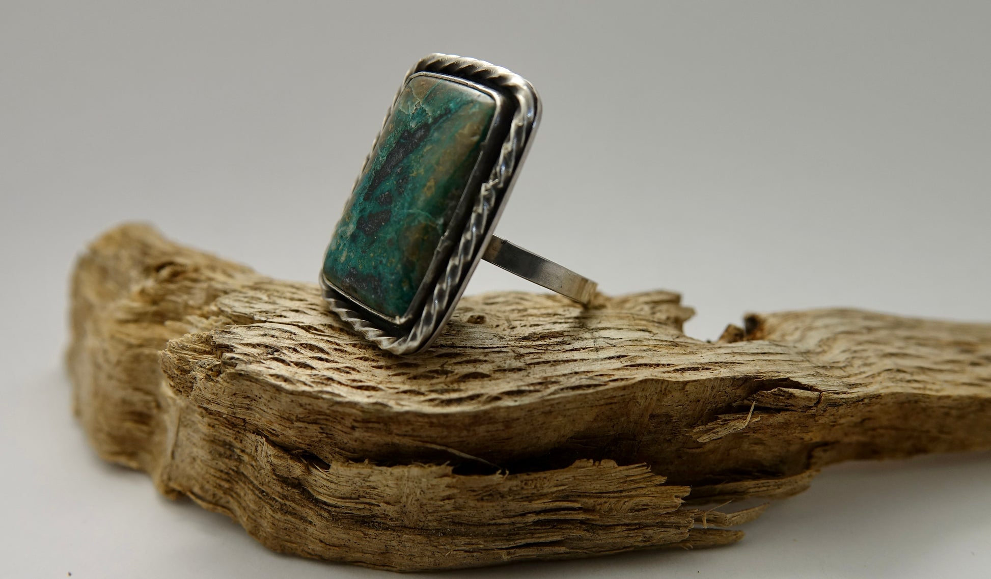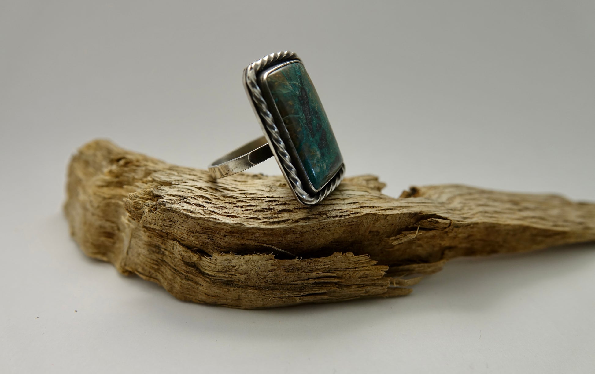 Chrysocolla Ring - Square Stone - Size 6-9 ADJUSTABLE BAND