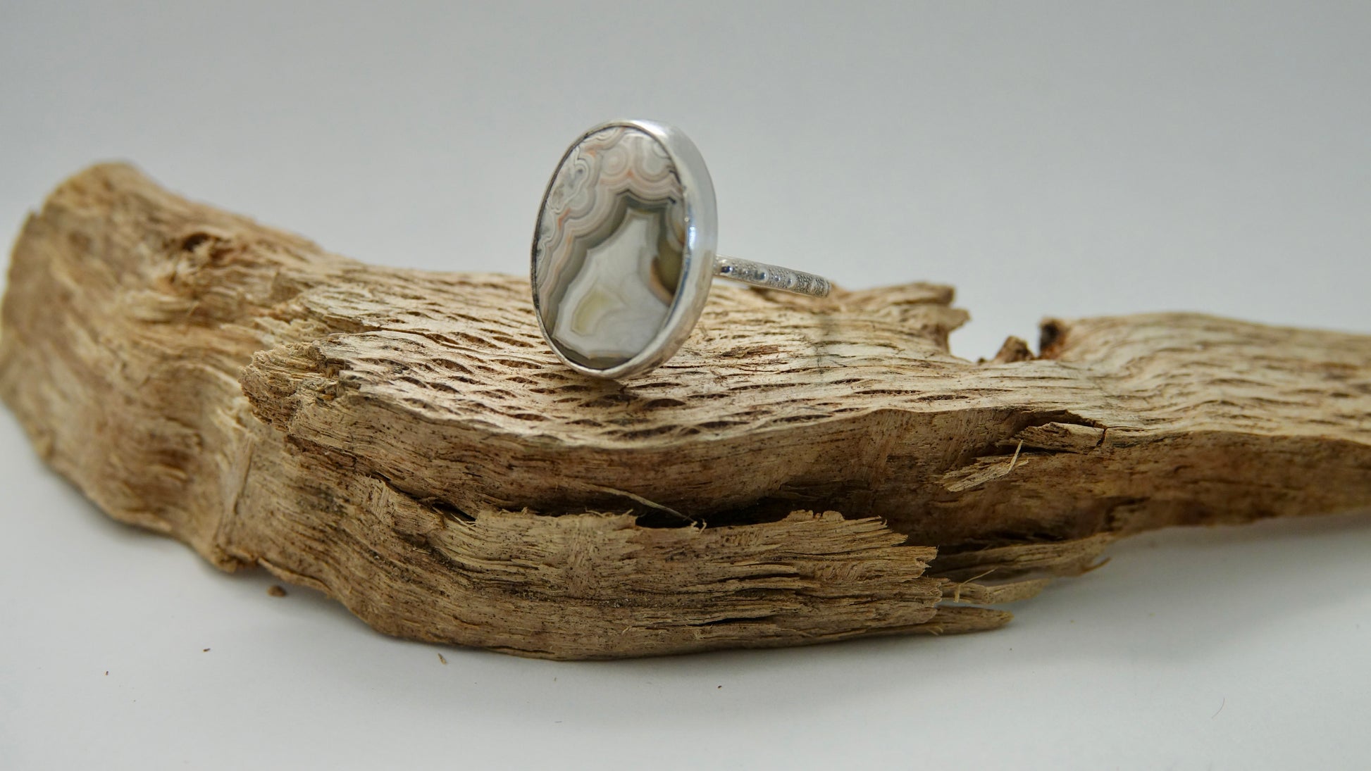 Crazy Lace Agate Ring - Oval Stone - Size 8