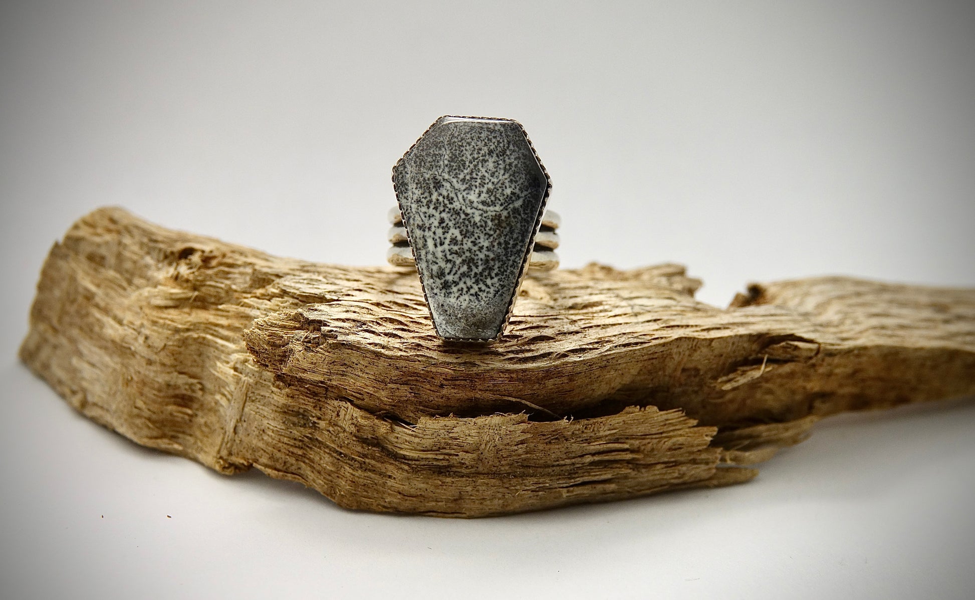Dendritic Agate Ring - Coffin - Size 6.5
