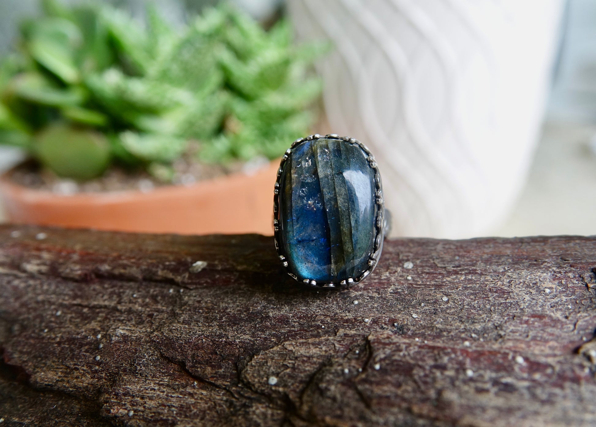 Labradorite Ring - Rectangle Stone - Size 7.75