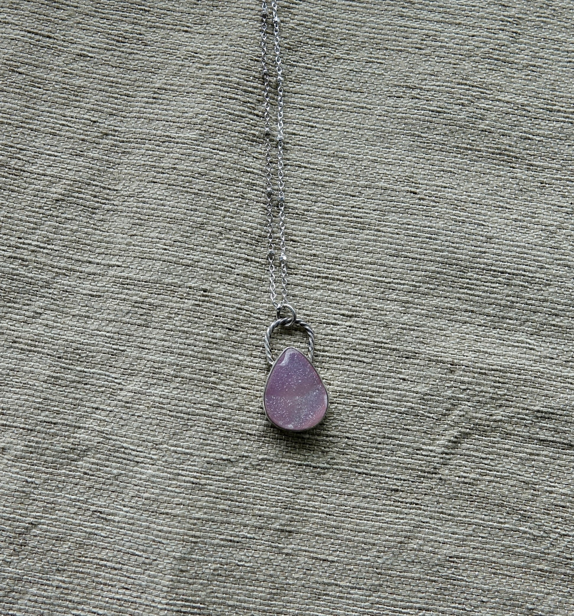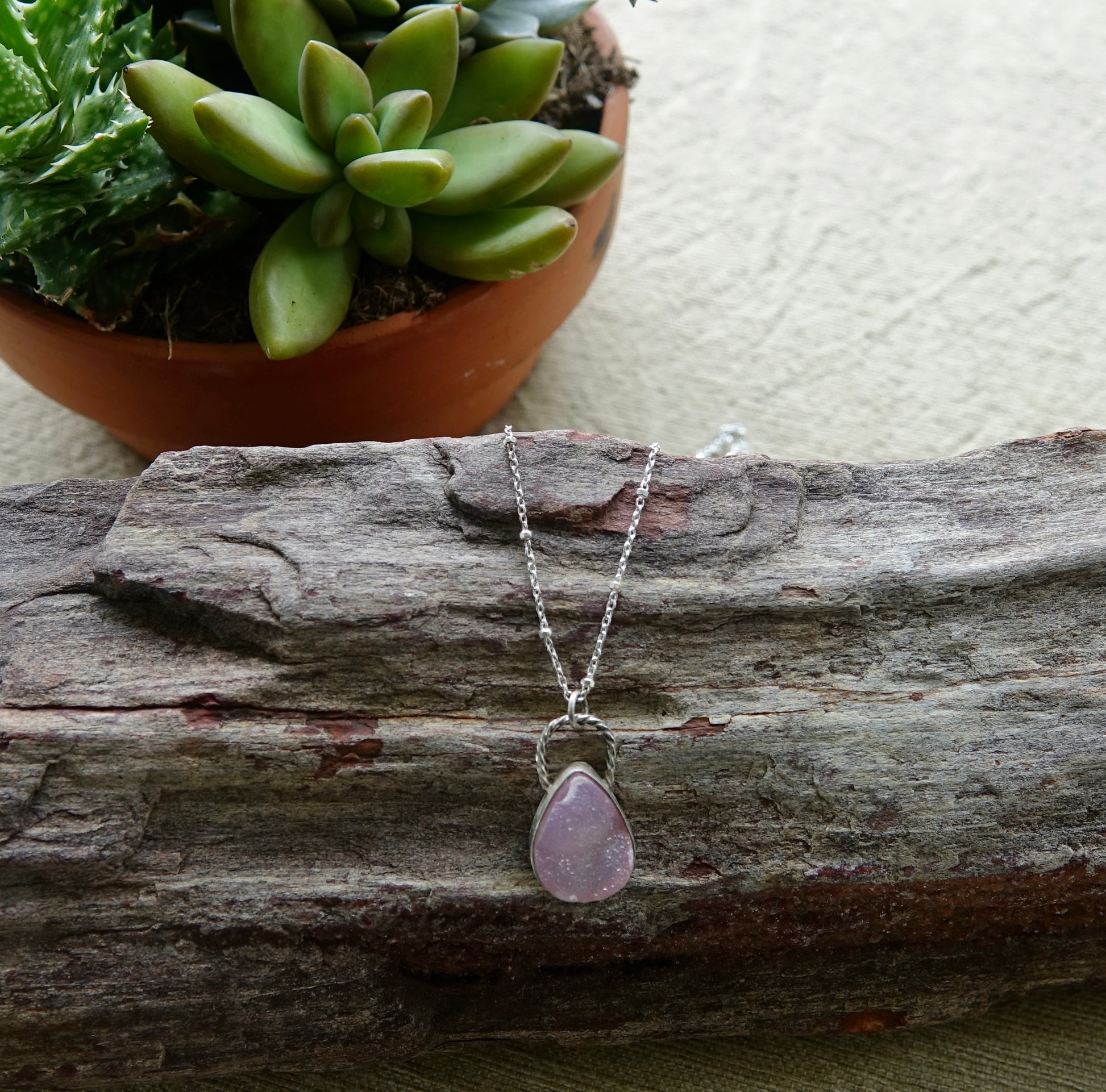 Light Pink Druzy Teardrop Necklace with 18" Cable Chain with Diamond Cut Beads