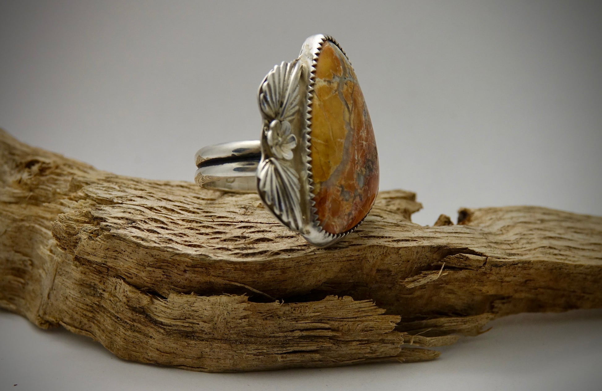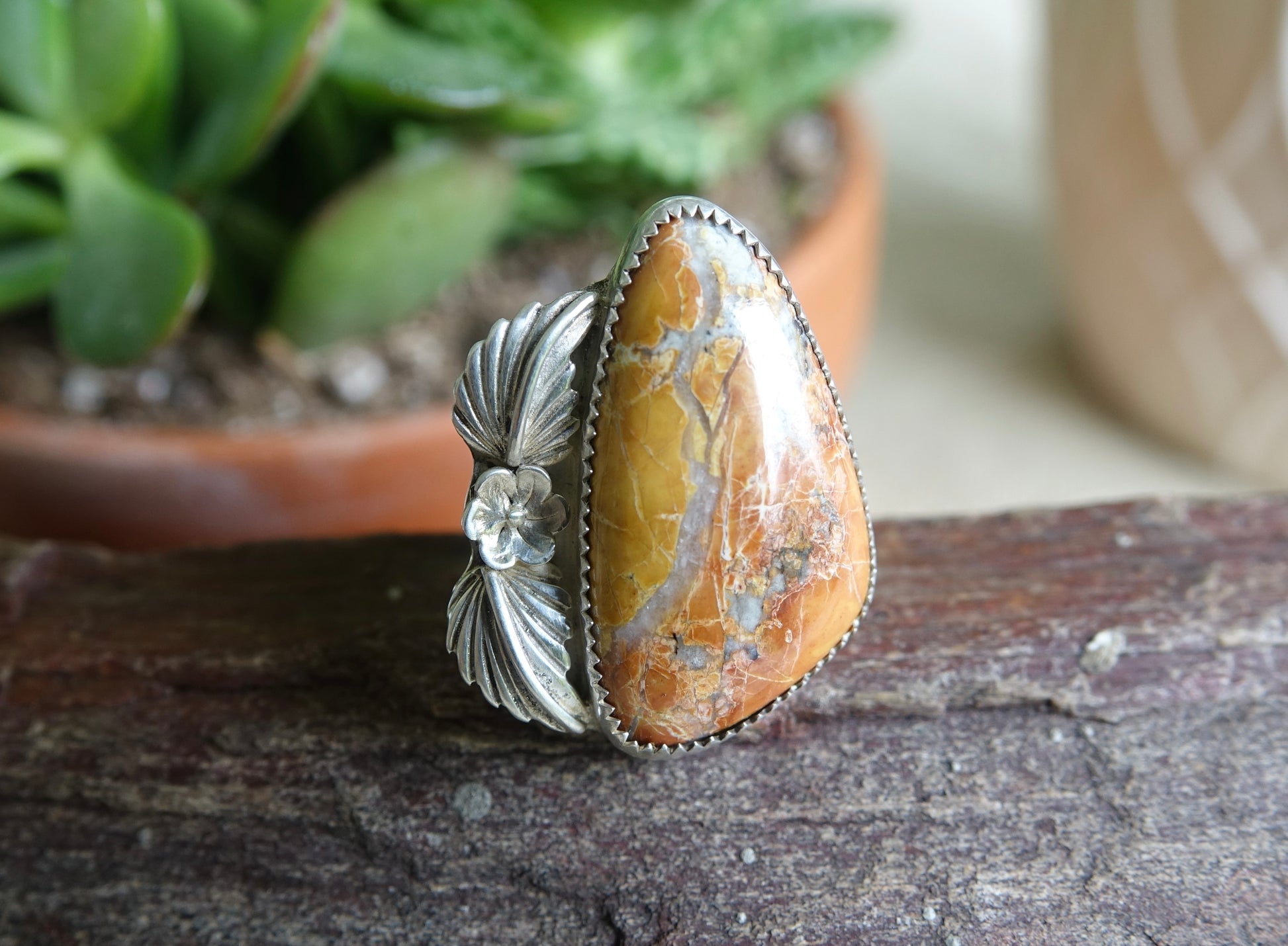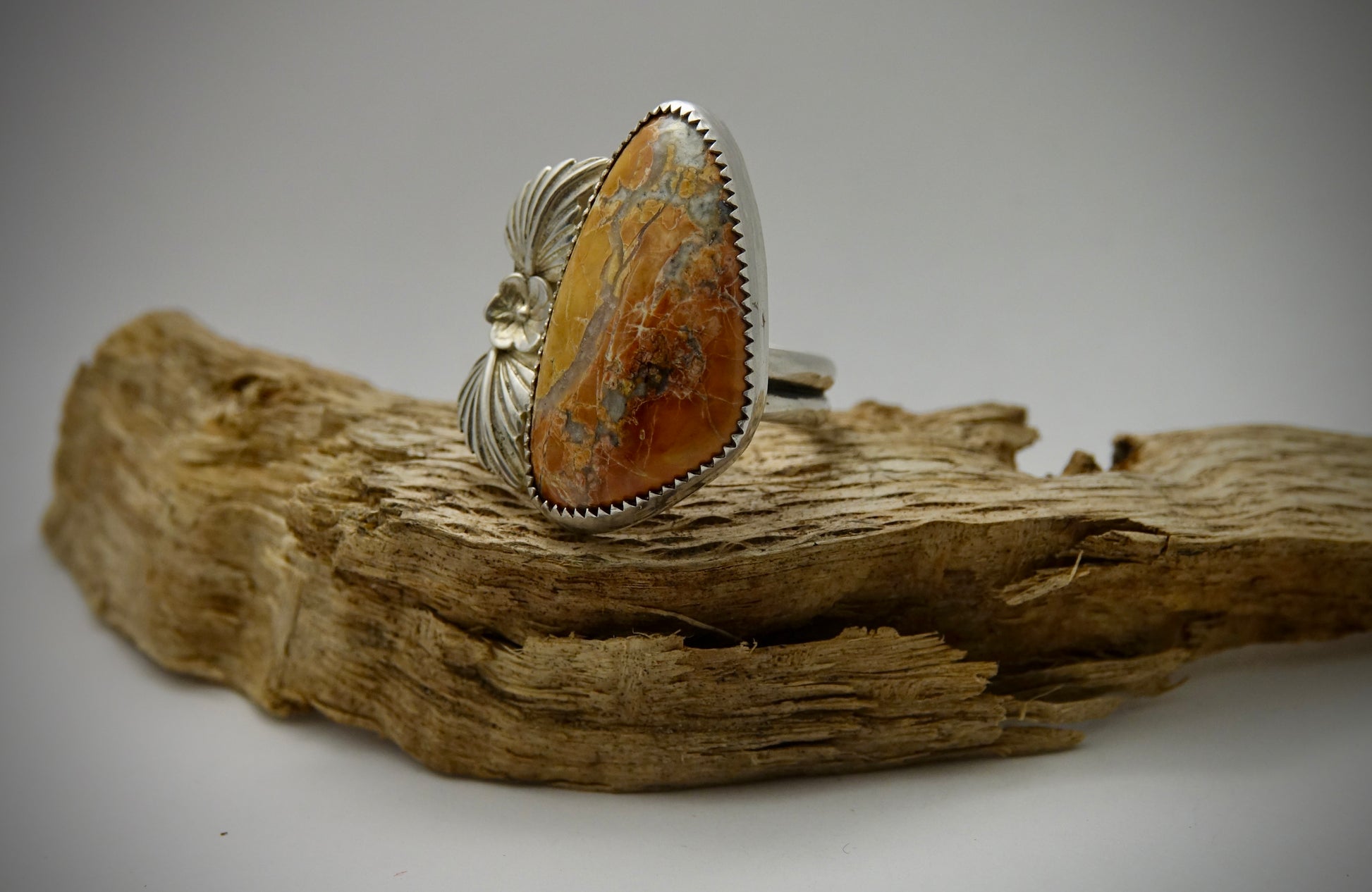 Maligano Jasper Ring with flower and leaf accents - Size 7.5
