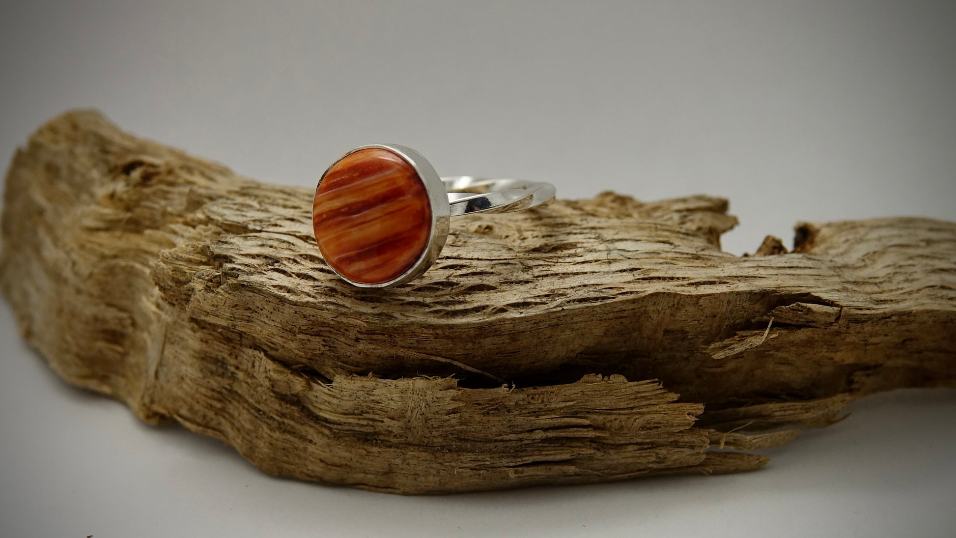 Orange Spiny Oyster Shell Ring - Round Stone - Size 7