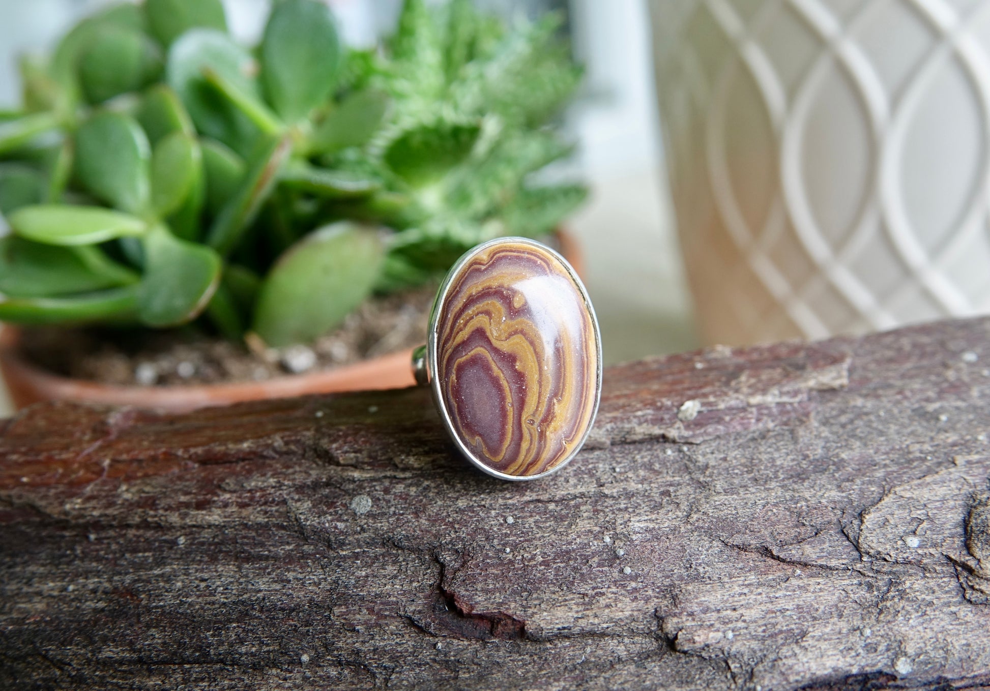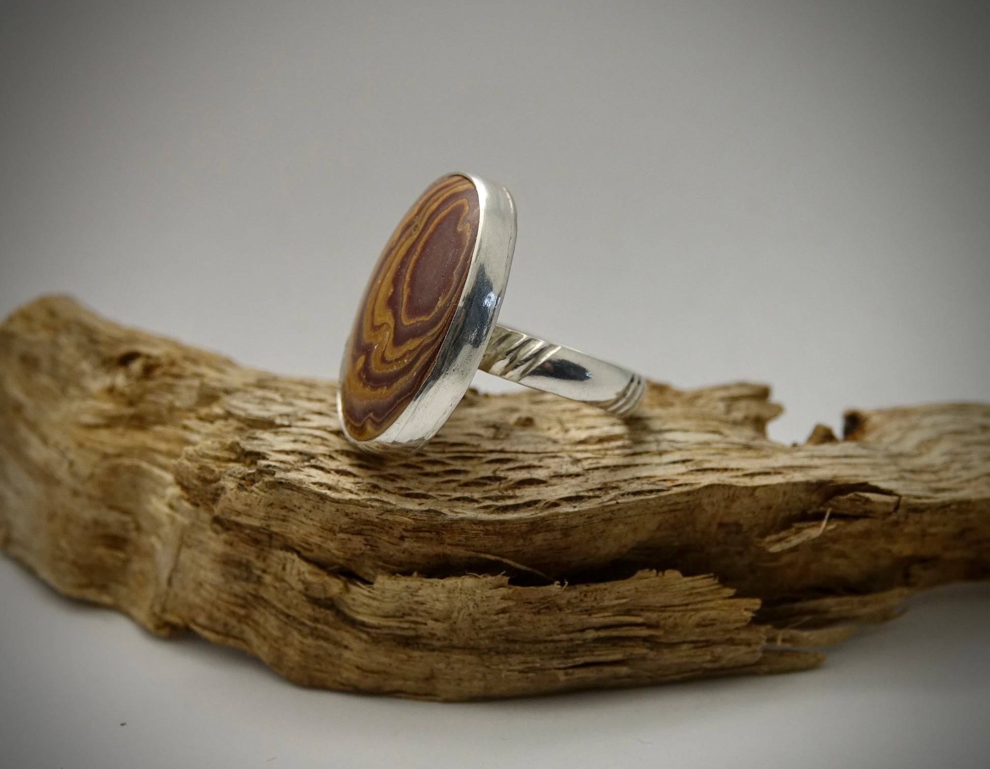 Rainbow Hickoryite Ring - Oval - Size 7.5
